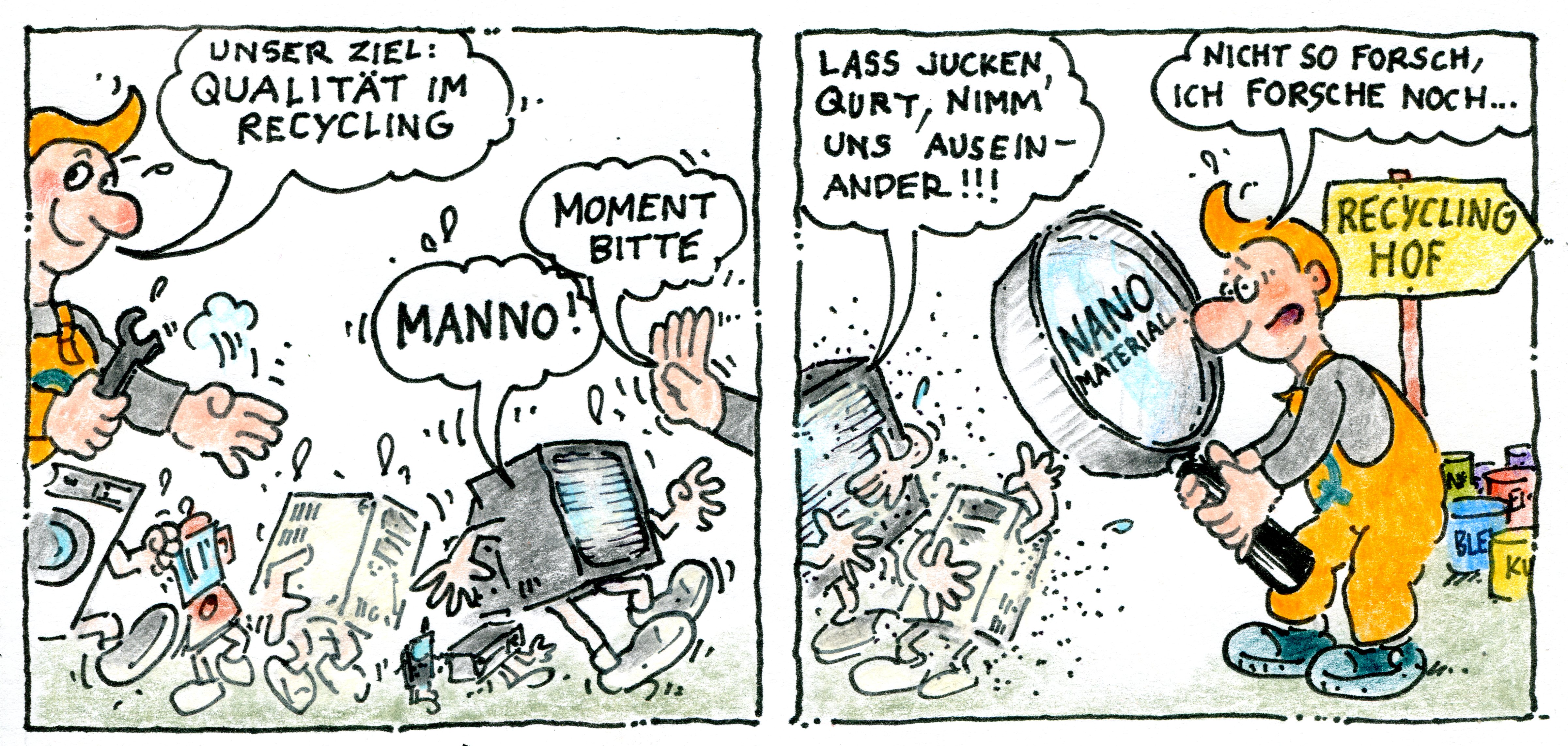 Interview mit Carsten Eichert zum Vortrag auf der IFAT13.10.2010 Vortrag über End-of-Life Management von Nanomaterialien auf der IFAT 2010Sehr geehrte Damen und Herren,wir senden Ihnen zur Veröffentlichung ein Interview mit Carsten Eichert zu seinem Vortrag auf der IFAT 2010. Mit freundlichen Grüßen Andreas Geil QuRec Pressebüro Berlin Berlin, 13.10.2010 „Nanomaterialien - Herausforderungen für die Recyclingindustrie“ Carsten Eichert, der Projektkoordinator von QuRec und Geschäftsführer der ENCROS GmbH Resource Optimising Solutions, zieht ein positivesFazit aus dem Messeauftritt bei der IFAT Entsorga 2010: „Das von ENCROS koordinierte Recyclernetzwerk QuRec war hervorragend platziertauf dem bvse-Gemeinschaftsstand und wurde von den QuRec-Partnern gut vor Ort unterstützt. Der Vortrag von Carsten Eichert "Nanomaterialien in der Abfallwirtschaft und die Produktverantwortung der Recyclingindustrie." stieß auf großes Interesse von Medienpartnern, allein aufgrund des Themas „Nano…“ kamen ca. 50 Zuhörer. Es wurden viele Fragen zur Identifikation von Nanomaterialien sowie denweiteren Wirkungen von Nanomaterialien im Sekundärrohstoff gestellt und beantwortet. Als Fazit lässt sich feststellen, die NIA –Nanotechnology Industries Association wird sich im Oktober 2010 mit QuRec treffen, um die Problematik zu erörtern. 1.) Herr Eichert, Sie waren mit QuRec und ENCROS auf der IFAT 2010 vertreten und haben einen Vortrag gehalten. Das Thema war für dieBranche relativ neu. Wie war die Veranstaltung? C.E.: Das Publikum war sehr interessiert, weil es erstmals das Thema Entsorgung und Recycling im Zusammenhang mit Nanomaterialienpräsentiert bekam. An den Fragen spürte man, dass ein gewisses Maß an Unsicherheit herrschte, das Thema anzunehmen. Die vor mirVortragenden haben die Möglichkeiten und Chancen der Nanotechnologie dargestellt. Sie sind nicht auf die Entsorgungsfrage eingegangen, auchweil sie teilweise keine Rolle spielt. Sie haben aber sehr wohl während meines Vortrags erkannt, dass auch sie sich mit den Fragen der Entsorgungauseinandersetzen müssen. CARSTEN EICHERT. 2.) Was macht QuRec in naher Zukunft in Sachen Recycling von Nanomaterialien? C.E.: QuRec wird das Thema weiter begleiten und verfolgen. Noch sind es mehr die Entwicklungsfragen als die Umsetzungsfragen, diebeantwortet werden müssen. Wir wissen noch nicht, wie sich Nanomaterialien auf den Recyclingprozess oder das Sekundärmaterial auswirken.An dieser Stelle wird QuRec ansetzen, denn es sind keine reinen Nanomaterialien, die in den Recyclingprozess kommen, sondern sie befindensich auf oder in Produkten, die man schon kennt. Da man die Nanomaterialien nicht erkennen kann, werden diese Produkte wie normale Produkte behandelt. Ob es doch einen Unterschied gibt, muss erforscht werden. Daran wird sich QuRec beteiligen. 3.) Wie waren die Reaktionen der Nano-Branche? C.E.: Die Nanobranche reagiert noch sehr verhalten auf das Thema. Durch unsere Aktivitäten werden die Verbände sensibilisiert. Sie erkennen aber, dass sie das End-of-Life nicht aus den Augen verlieren dürfen. Darüber hinaus sind die Entsorgungsfragen immer Bestandteil der Zulassung eines Stoffes nach REACh. Insofern bietet sich eine Kooperation von QuRec mit der Nanoindustrie an. Die Abbildung von JARI BANAS ist zum freien Abdruck. 4.)Das Thema Nanomaterialien und Recycling ist ein relativ neues Thema. C.E.: Hinsichtlich der Entsorgung kommt es immer darauf an, was entsorgt werden soll. Es ist eine differenzierte Betrachtung notwendig! Reine Nanomaterialien, wie z.B. Nanosilber stellen überhaupt kein Problem für die Entsorgung dar. Nanosilber wird zur Scheideanstalt geliefert und dort zu reinem Silber verarbeitet. Vergleichbares gilt für andere Nanomaterialien. Schwieriger wird es, wenn die Nanomaterialien verarbeitet sind und als Bestandteile von neuen, aber bekannten Produkten auf den Markt kommen, z.B. Sportwäsche mit Nanosilberbeschichtungen. Diese Produkte kann man nicht von herkömmlichen Produkten unterscheiden. Der Anteil der Nanomaterialien bei einem Sportshirt liegt bei wenigen Mikrogramm. Denn es sind ja Nanomaterialien, die aufgebracht wurden. In dieser Form des Abfallaufkommens liegt die Herausforderung. Hier gibt es noch keine Lösungen. C.E.: Es gibt die Gespräche zwischen Herstellern von Nanomaterialien und Entsorgern, z.B. beim Nanosilber oder auch Nanosilizium. Wo es noch mangelt, ist die Kommunikation zwischen Verwender (= Endprodukthersteller) und Entsorger. Die Endprodukte werden in alle Richtungen „verstreut“ und damit für den Hersteller nicht mehr verfolgbar. C.E.: So sehr Nanomaterialien die Eigenschaften von Produkten verbessern, so sehr stellen sie neue (unsichtbare) Herausforderungen an die Recycler. 7.) Konkret bedeutet dies, der Vorteil in der Produkteigenschaft ist ein Nachteil in der fachgerechten Entsorgung. Also sind Nanoprodukte weniger nachhaltige Produkte als die z.B. von Prof. Braungart geforderten Cradel to Cradel Produkte? C.E.: Nein, das kann man nicht sagen. Nachhaltigkeit auf die Entsorgung zu begrenzen oder gar auf die „Vergänglichkeit“ wie Herr Braungart das macht, halte ich für unseriös. Nachhaltigkeit bedeutet viel mehr. Durch die Nanomaterialien können z.B. während der Nutzung Ressourcen gespart werden. Das trägt viel mehr zum Umweltschutz bei als die Notwendigkeit, dass ein Produkt kompostierbar ist. Wichtig ist, dass Nanomaterialien ein Recycling im Sinne der Wertstofferhaltung nicht stören und dass die Nanomaterialien im Entsorgungsprozess keine Risiken auslösen. Beides muss gewährleistet sein bzw. es müssen anderenfalls Schutzmaßnahmen getroffen werden. Für einen Recycler, dem es um das Schließen von Wertstoffkreisläufen geht, ist es wichtig, dass das Nanomaterial nicht seinen Sekundärrohstoff schädigt. Wenn dennoch negative Folgen eintreten, muss der Recycler in der Lage sein, diese zu erkennen und beheben zu können. In diesem Fall bedarf es der Zusammenarbeit 